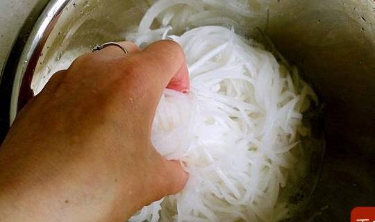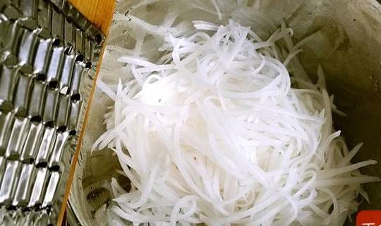 2.白蘿卜去皮,用擦絲器擦成絲。