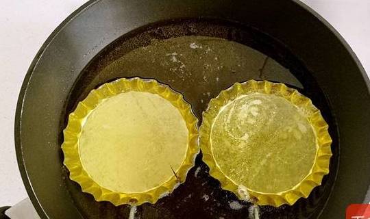 13.鍋中放油,把模具放入一同加熱,沒有模具的,可以用蛋撻模也是一樣的。