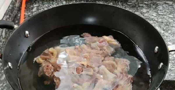 2.炒鍋內加入適量的冷水,準備好的鴨肉放進去。然後放入蔥薑、啤酒去腥。不用蓋蓋子,大火燒開。水燒開後撇去裡面的浮末,轉中火繼續煮沸五分鐘。
