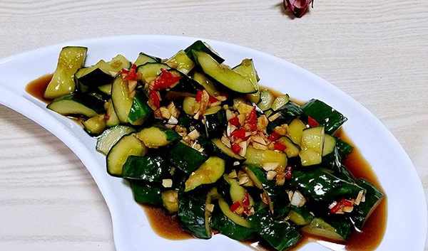 制作時,首先將處理幹凈的黃瓜拍裂,切成塊,再把涼拌要用到的蔥薑蒜、小米辣切碎備用,其次將切好的黃瓜以及香料放入碗中,再根據個人口味加入鹽、味精、醬油、醋等調料,最後,攪拌均勻,裝盤,還可以放入冰箱冷藏一會,其口感會更加爽脆。
