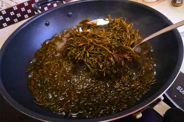 羊棲菜為瞭便於保存,我們購買時一般都是曬幹的,幹的羊棲菜跟幹海菜一樣,需要泡發後才能繼續烹飪。