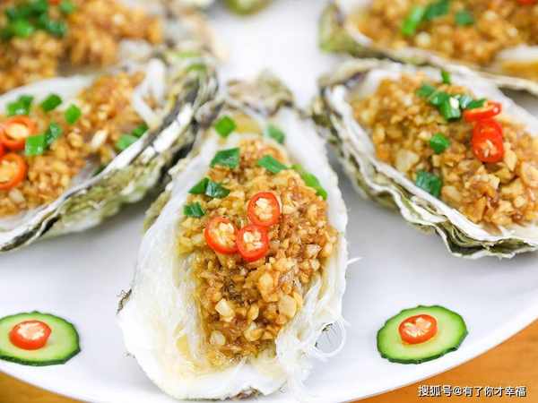4.蒸鍋中上大氣以後把生蠔放進去,中火蒸5分鐘就可以瞭,取出放上小米椒和蔥花,再分別滴上幾滴香油,把炸蒜剩下的油加熱一下澆在上面,美味即成。