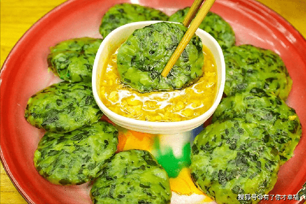 搗碎以後放入碗中,加入適量的生抽、陳醋、香油,倒入一點涼白開,把料汁調拌開,一道清香鮮美的菠菜餅就做好瞭。