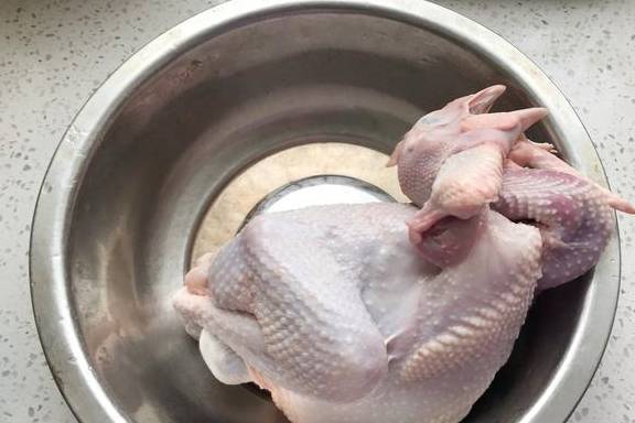 1、去市場買一隻小公雞,小編買的大概三斤左右,剛好夠一傢人來吃。在買的時候就讓服務人員幫忙把內臟處理幹凈,不然自己很難清理。拿回傢之後將它清洗幹凈,然後把其中的水分瀝幹。