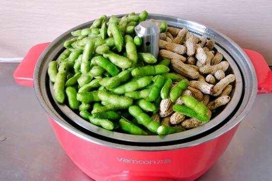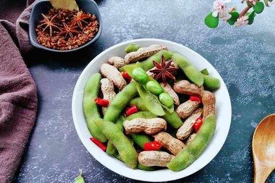 花生500克、毛豆500克、八角3個、老抽20克、水2500克、茴香3克、桂皮2克、尖辣椒4個、香葉1片、花椒2克、老抽20克、精鹽15克、生抽20克