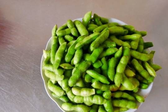 2.毛豆清洗幹凈控水,把其中一頭剪去一點點,也是煮的時候方便入味