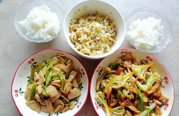 米飯和午餐剩下的藜麥飯,葷素搭配兩個炒菜,做晚餐簡單美味。