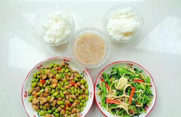 菜:毛豆炒肉丁+毛芹菜炒豆皮
