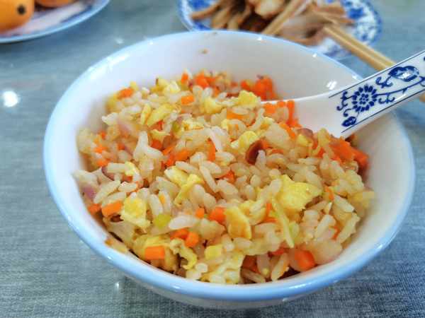 傳統的炒米飯,一般放油都比較多,自己傢做,盡量少放油才更健康。