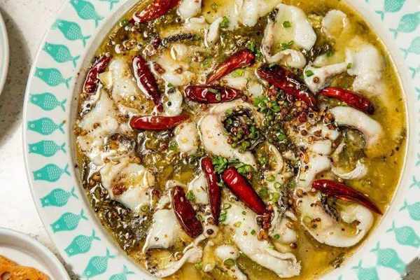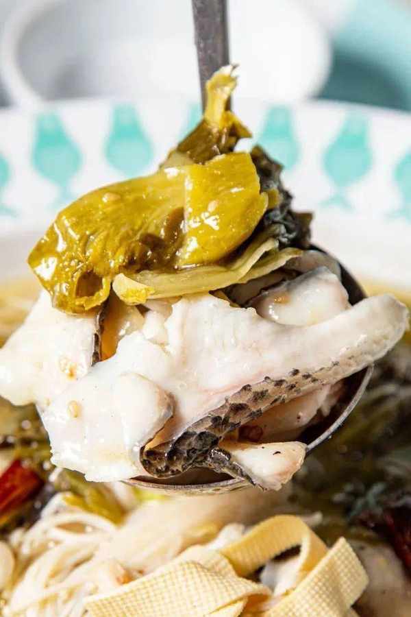彈嫩雪白的魚肉,夾起來還透著光亮,別忘瞭再淋上一勺香濃的湯汁,充分吸收瞭湯汁,酸中帶辣,辣中有酸。