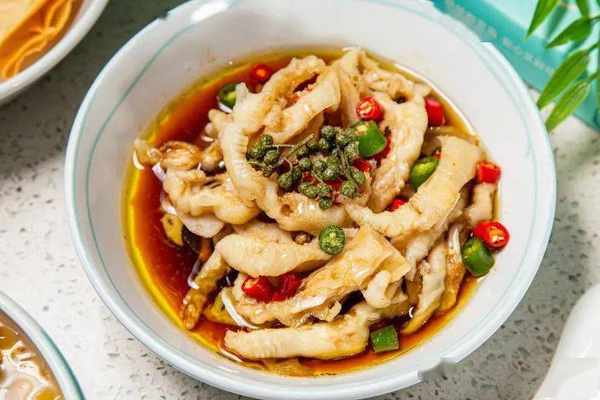 每一條烏魚都是經過精心挑選,店內師傅刀功精湛,每片魚肉的薄厚均勻,表面鋪滿一層滿滿的辣椒,再淋油禮成,濃鬱又開胃~