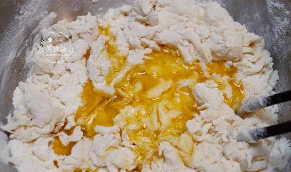 第三步:再加入黃油或者玉米油,用筷子攪拌均勻。