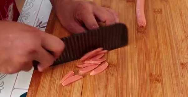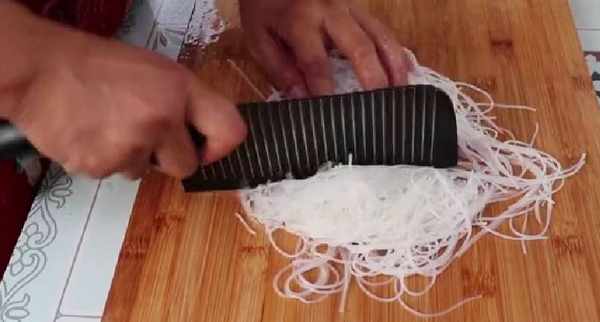 再把喜歡的配菜切一下,火腿腸切片,提現泡好的粉絲切段。