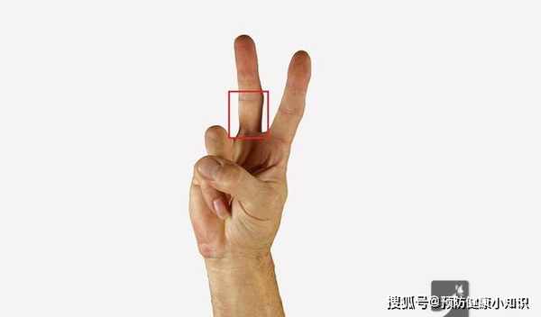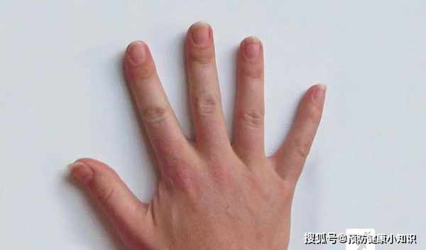 。一般是指根變細,中指和兩側手指之間的指縫明顯增大。