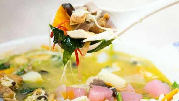 制作工藝很簡單,“鍋底”一般由羊肉清湯加少許酸菜制成,口味偏重香辣,食材為各種肉類、各種菜類,如煎土豆、炸豆腐、牛羊蹄子、鹵過的牛羊肉、海帶、綠葉菜、筍尖等。