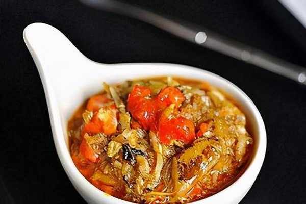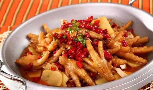 薑辣鳳爪很多廚師都在做,在壓制鳳爪時,除瞭加入常規的調料外,我們還加入瞭適量妙多咖喱膏(500克鳳爪加咖喱膏20克-30克)。咖喱膏可以增加菜肴的復合味。