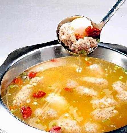 很多湘菜館都有養生肉丸湯這道菜。一般做法就是取五花肉蓉攪打上勁;鍋內放入清水1千克,燒至50℃時,將肉餡擠成小丸子,下入熱水中,撒入紅棗,用微火煨制,加鹽、雞粉或老抽來調味。現在,除瞭鹽和雞粉外我們還加入瞭100克可樂,做好的菜肴回味更好,大傢不妨來試試。