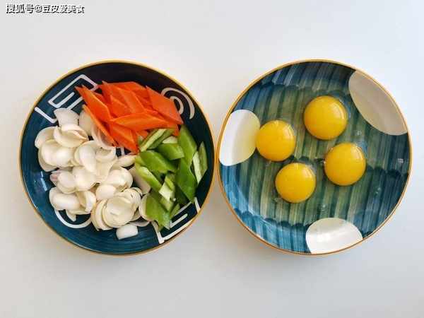 材料:百合50克,雞蛋4個,青椒1個,胡蘿卜適量,鹽適量,白酒3滴,白砂糖少許,色拉油適量。