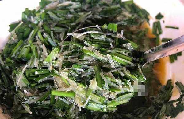 大傢在做的時候,韭菜和粉絲一定要力幹水分,如果水過多的話,很容易會煎散。