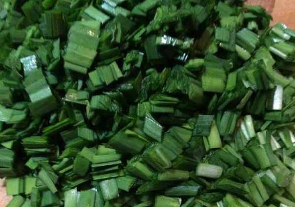 然後將韭菜摘去爛葉和黃葉之後,在清水當中清洗幹凈,撈出空幹水分之後,將韭菜切成段狀放進大碗當中。