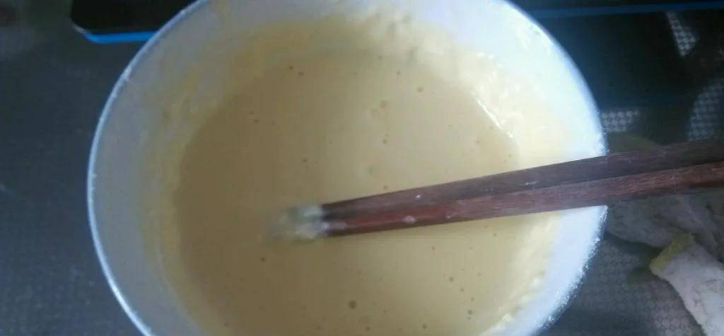 2.大蔥一根切蔥花,老薑一塊切薑片,把它放入準備好的帶魚裡面,加入蔥薑、胡椒粉精鹽醃制五分鐘備用。準備面糊:兩勺淀粉,一勺面粉放入碗中,然後在裡面打入兩個母雞蛋放入少許的精鹽、13香調味。用筷子攪拌成稀稠的面糊狀,放入碗中備用。
