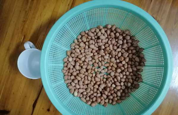 3、然後就可以開始瞭:將挑好的1斤(約500克)花生米放入一個水盤中,加入清水,用手抓弄花生米一會兒,清洗幹凈並且充分吸收水分,再加入1勺白醋一起洗。4、用菜篩子把花生米撈出控水撈出,盡量使洗好的花生米晾幹水分,以保證炸出來的花生米不容易脫皮而影響食相。