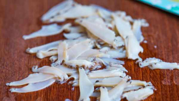 1、買回來的鮑魚,表面都有一層黑色的東西,用刷子刷洗幹凈,刷幹凈之後表面都是白色的。然後用勺子把鮑魚肉取出,把嘴巴撕掉。