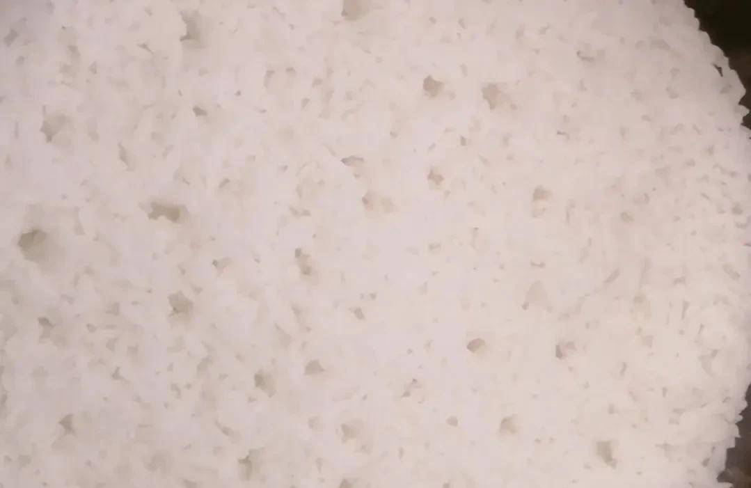 把大米放在電飯鍋裡蒸熟以後待用,讓它晾一晾,稍微晾一下,比較好炒。