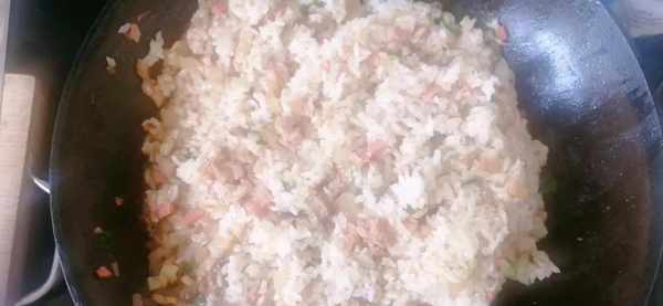 然後把米飯倒進去,翻炒以後,米飯就可以出鍋瞭,第一次嘗試這種做法,沒想到孩子很喜歡吃,一口氣吃瞭兩碗,吵著下次還要吃!