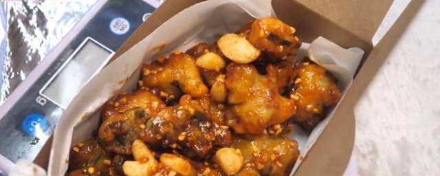 下一步是制作醬汁,首先在鍋裡面放入醬油,然後加入甜辣醬,最後加入小半勺香草粉,醬油炸好的蝸牛球放入鍋裡翻炒,最後再撒上花生碎就可以出鍋瞭。
