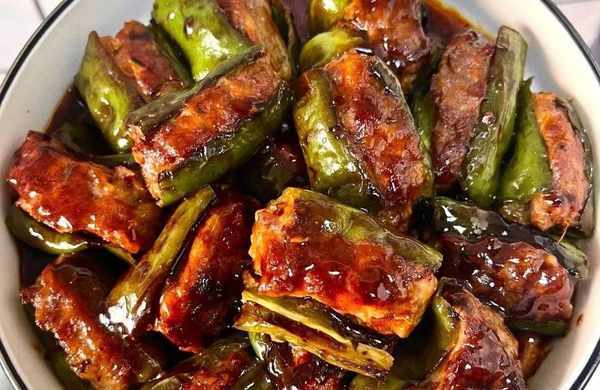 3、虎皮尖椒釀肉