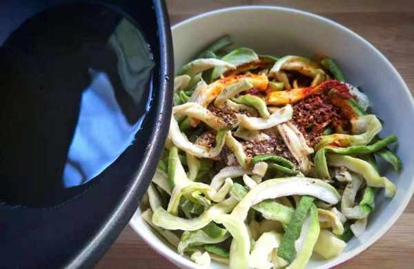 起鍋燒水,水燒開後,將切好的苦瓜片焯水60秒左右撈出來,再次瀝幹水分,最後放在陽光充足通風良好的地方,曬成苦瓜幹即可。