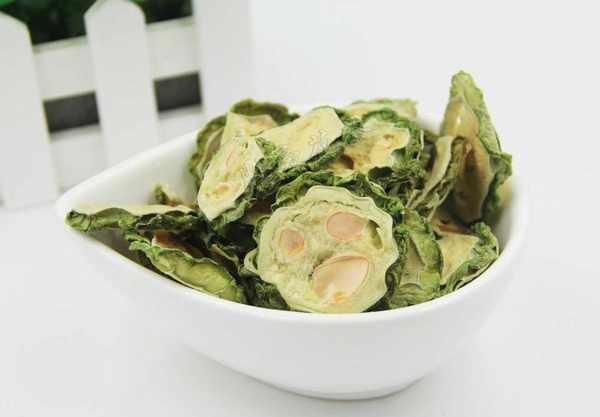 苦瓜幹最好的吃法就是泡水喝,取幾片苦瓜幹用開水沖泡,搭配些綠茶或者是菊花飲用。