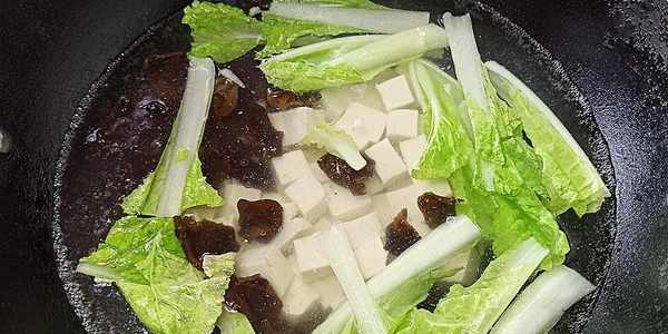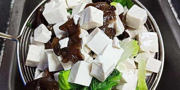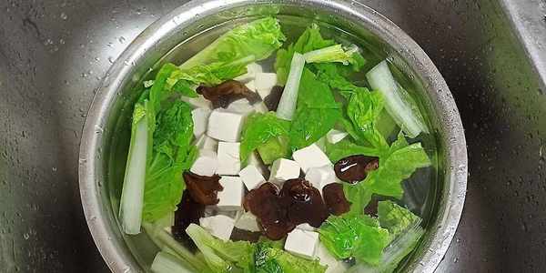 (3)豆腐、木耳、小白菜都要焯一下水,可以去除異味,但是焯水時間要掌握好,防止焯水過火。