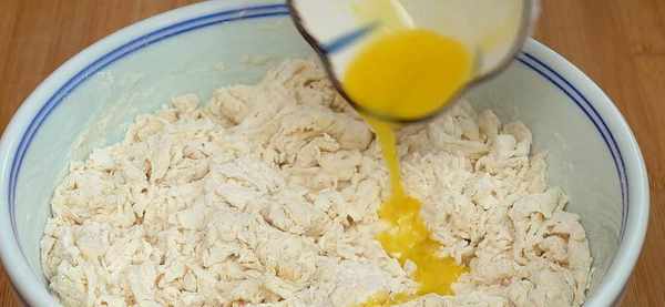 2.攪拌成面絮狀,然後加入15克融化的黃油。沒有黃油的可以不加。