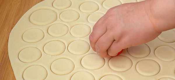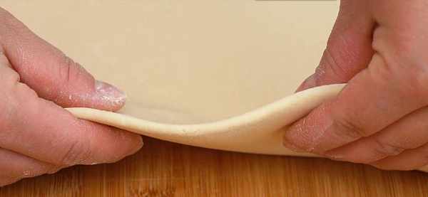 4.先不發酵。把它移到案板上來,用搟面杖 把它搟成厚度在0.5厘米左右的厚片即可。