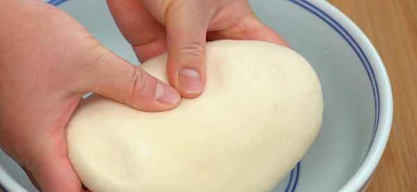3.接著下手揉成表面光滑的面團。剛開始很難揉光滑,把它 移到案板上揉搓,很快就能光滑瞭。