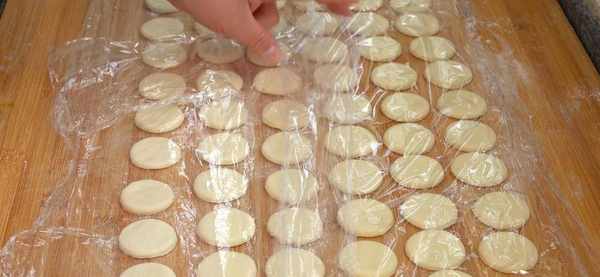 6.全部做好之後放在案板上,要留出一點間隔,防止粘連在一起。蓋上保鮮膜,發酵半個小時。