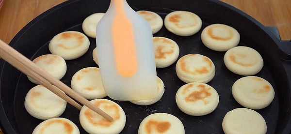 10.反復翻面多次,勤翻面。烙到兩面顏色金黃,按壓餅面回彈很快的程度就可以出鍋瞭。
