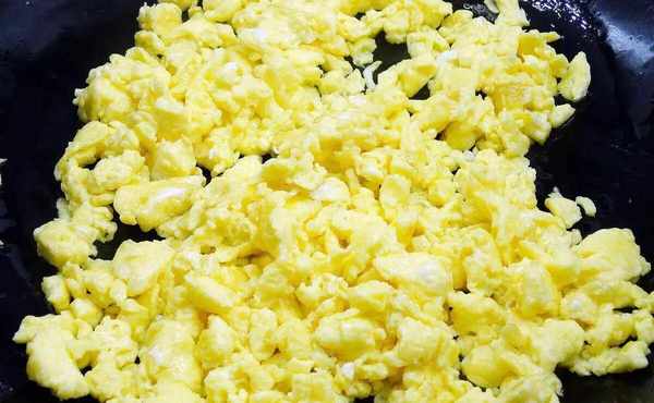 (2)碗中打入3個雞蛋,加一點鹽和雞精增加底味,鍋中倒油倒入蛋液炒熟,炒得碎一些,盛出來放涼