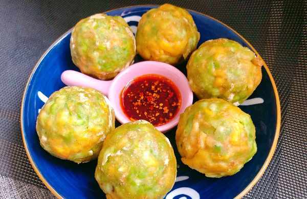 一個個圓乎乎胖嘟嘟的,顏色青亮,看起來非常有食欲,不用油炸,吃起來相對更健康