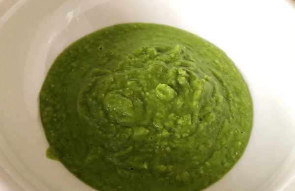 (2)倒進榨汁機,加入清水,水量沒過豌豆就可以,打成泥,不需要打得太碎,打成小顆粒狀