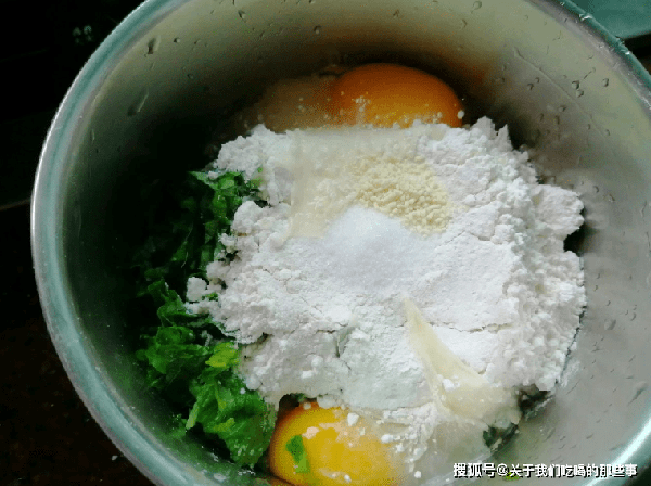 1、莧菜放入盆中,加入一勺鹽、一些清水,攪拌均勻後浸泡10分鐘,撈出洗幹凈並瀝幹水分。瀝幹的莧菜用刀切碎,放入盆中後倒入2個雞蛋。蒜瓣去皮切末,也放入莧菜中。