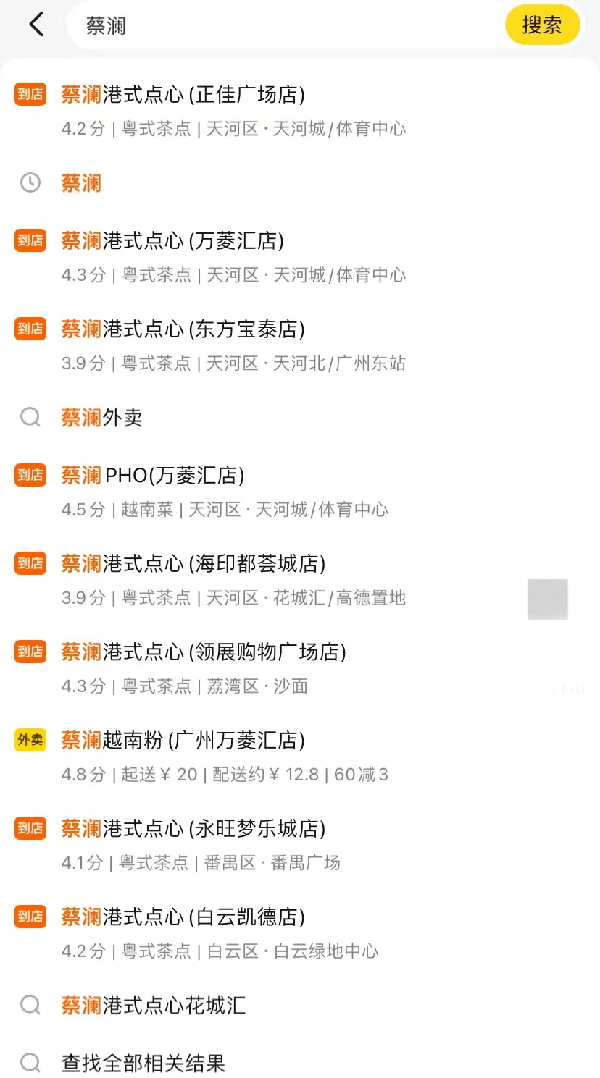 小編查詢發現,蔡瀾港式點心餐廳在廣州有多傢門店。有不少網友在社交平臺上表示,飯點去吃要排長隊。