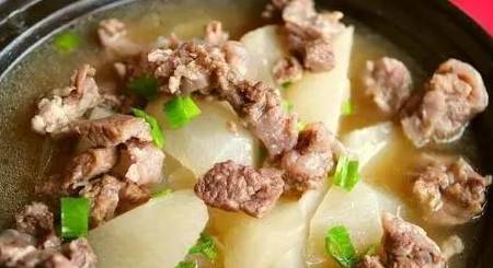 做法:將羊肉、白蘿卜洗凈,切成2厘米左右的小塊;香菜洗凈,切段;將羊肉、薑片、精鹽放入鍋內,加適量清水,大火燒開;燉煮1小時後放入白蘿卜塊,10分鐘後放入香菜、胡椒,稍煮即可食用。