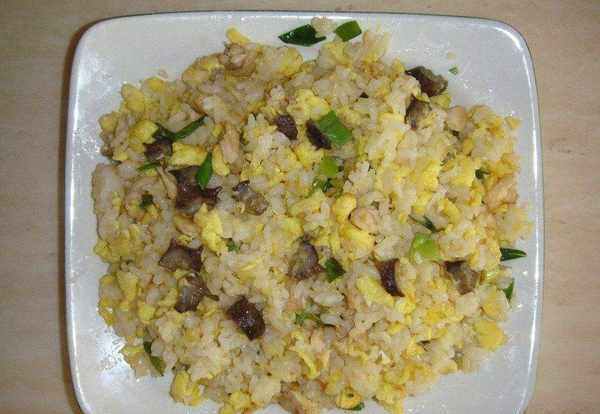 接著放入熟米飯,翻炒均勻後,加海參丁、雞蛋炒至入味即可