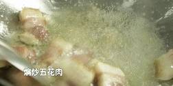第三步:煸炒五花肉,出油後下排骨同炒加開水燒開;