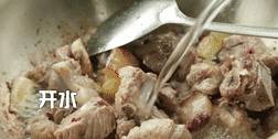 3、排骨炒香後需要加開水煮,可以使湯變白變濃。然後再從炒鍋轉入裝有開水的砂銚裡,一次性給足水,再燉。