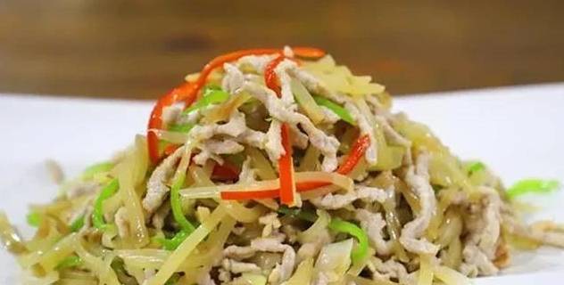 材料:榨菜200克、瘦肉108克、大蒜2瓣、薑絲3片、青紅椒2個、蔥絲半根、料酒1湯匙、生抽1湯匙、植物油適量。