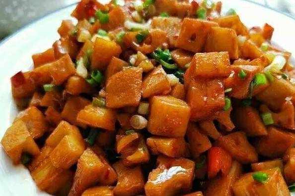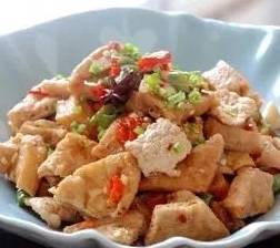 五花肉、油豆腐、小米椒、八角、桂皮、醬油、薑、蒜、冰糖、味極鮮、料酒、蒜苗、鹽